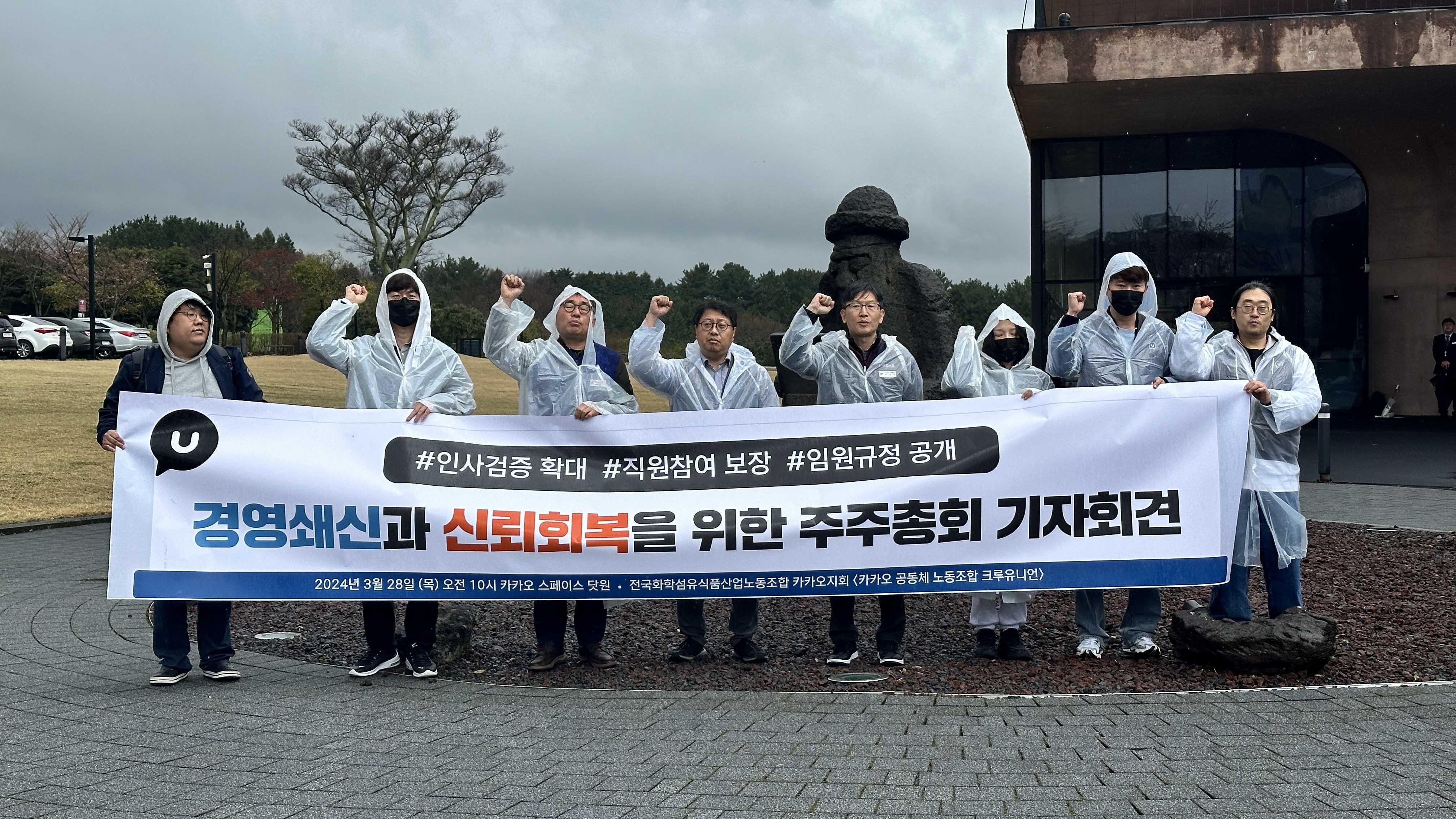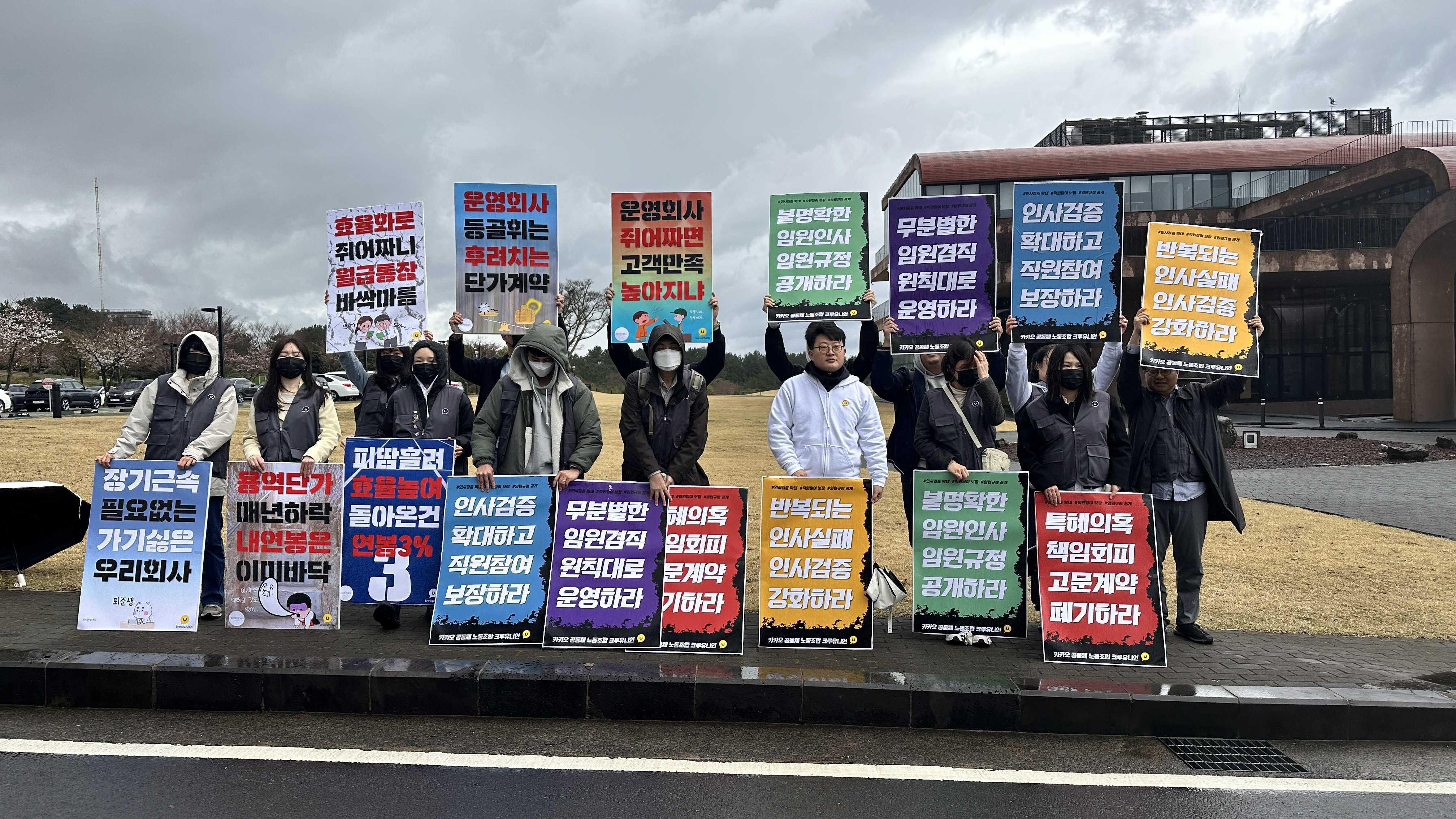 카카오 공동체 노동조합 크루유니언은 다시금 원칙을 회복하고, 진정한 경영 쇄신을 통해 대내외의 신뢰를 회복하고자 다음과 같이 요구합니다.