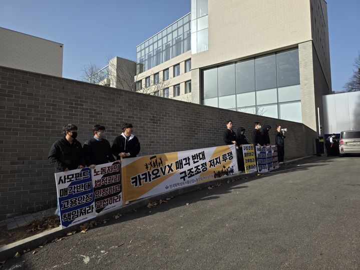 카카오 노조가 카카오게임즈의 자회사 카카오VX 매각 및 구조조정 반대 시위를 벌였다.