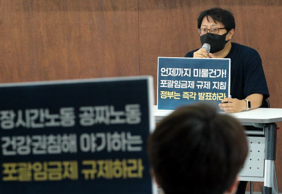 단체들은 장시간 노동 관행으로 과로사가 끊이지 않고 있는데도 문재인 정부는 2017년 10월까지 만들겠다고 한 포괄임금제 규제 가이드라인을 4년째 내놓지 않고 있다고 비판했다. 이들은 포괄임금제가 ‘21세기 노비문서’ ‘인간자유이용권’이라면서 정부가 포괄임금제 규제 지침을 하루 빨리 발표해야 한다고 촉구했다.