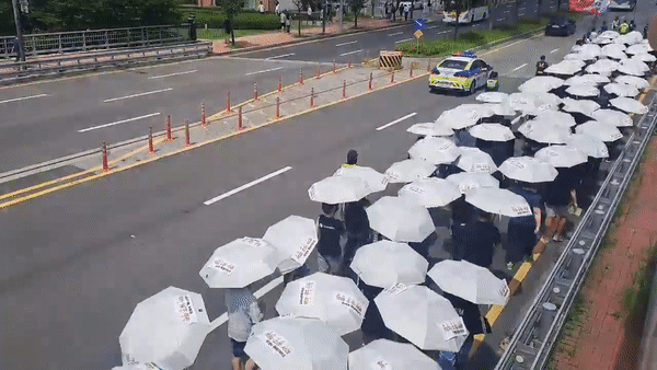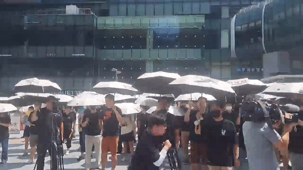 노조는 1차 집회 당시 카카오 그룹 컨트롤타워인 공동체얼라인먼트(CA)협의체에 서한을 전달하고, 김범수 카카오 창업자에게 사과를 요구했다. 이날 크루유니언을 비롯한 화섬식품노조 조합원들은 ‘책임·소통·사과’ 스티커가 부착된 양산을 쓰고, 앞서 집회와 동일하게 고용 불안 해소와 책임경영을 외쳤다.