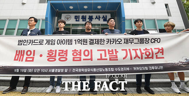 전국화학섬유식품산업노동조합 카카오지회(이하 카카오 노조)는 19일 서울 종로구 서울경찰청에 회사의 전 재무그룹장에 대한 고발장을 제출했다.